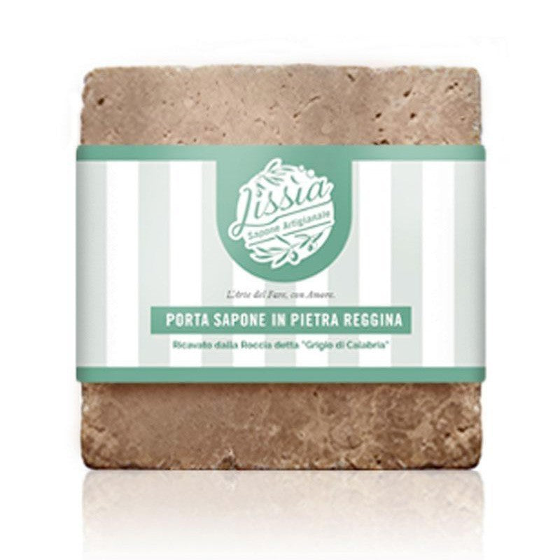 Portasapone realizzato nella tradizionale Pietra Reggina, un materiale tipico del nostro territorio le cui piccole cavità e la permeabilità aiutano a mantenere asciutto il sapone conservandolo